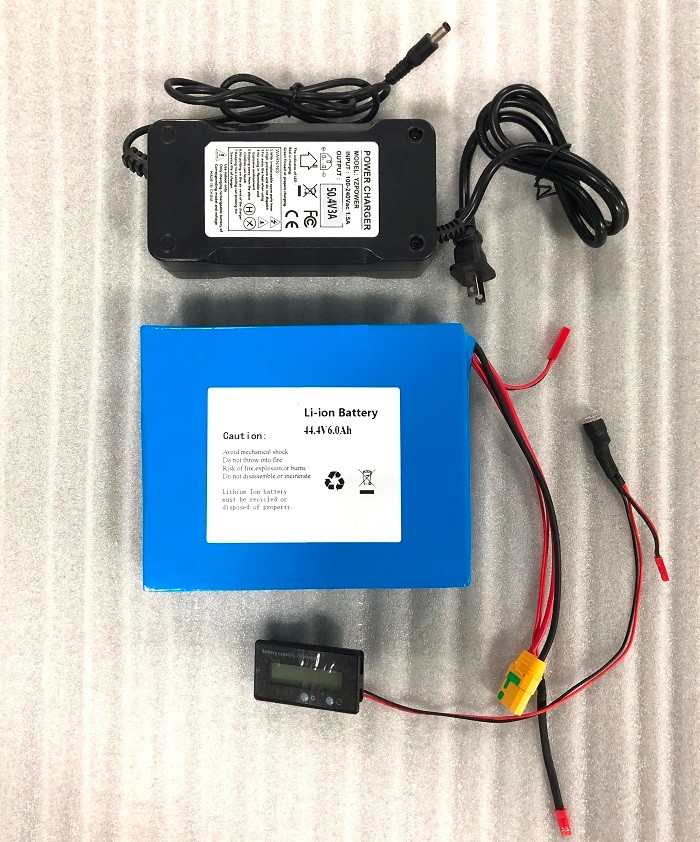 Electric skateboard battery 44.4V 6Ah 12S2P with LED Display and Charger