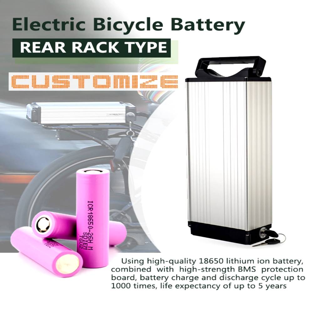 HiPOWER Rear Rack Type Lithium E-bike Battery Li-ion 36V 48V 52V with Customized Capacity of 10Ah 12Ah 13Ah 15Ah 16Ah 18Ah 20Ah 21Ah 23Ah 25Ah 26Ah 27Ah 28Ah 30Ah 35Ah